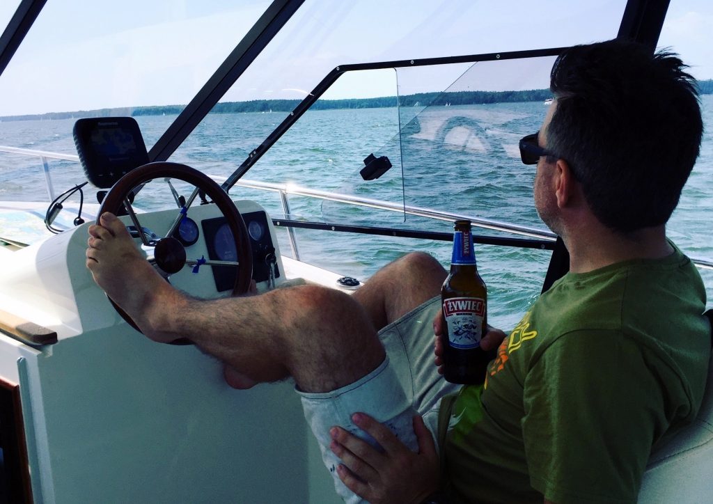 Na początku tego roku, zwabiony promocją przeszedłem kurs a potem szczęśliwie zdałem egzamin, dzięki któremu mogę ujeżdżać spalinowe sprzęty poruszające się po wodzie. Stało się tak przez przypadek, ponieważ celem był patetnt żeglarza jachtowego a pakietowo za drobną dopłatą oberwało mi się sternikiem motorowodnym. Tylko z czystej wygody i chęci nie narobienia się przy pociąganiu sznurków na jachcie napędzanym wiatrem, wyczarterowaliśmy sobie dom na wodzie napędzany olejem w okresie najwyższego sezonu wakacyjnego. Oczywiście pociąganie za sznurki to jeden z powodów, drugi, to całkiem prozaiczne przewracania się szklanki z piwem lub kieliszka z winem w czasie halsowania.